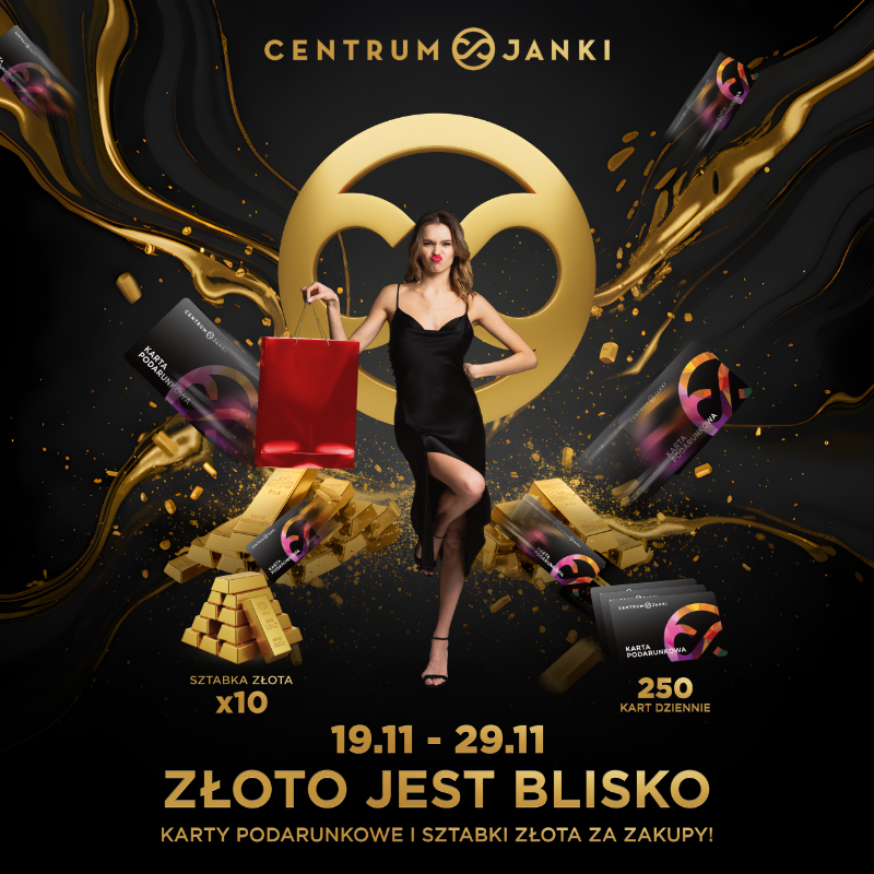 W tym roku Black Friday w Centrum Janki świeci pełnym blaskiem! Przez dziesięć dni każdy zakup może przybliżyć Cię do wyjątkowych nagród – od praktycznych kart podarunkowych po… prawdziwe sztabki złota.